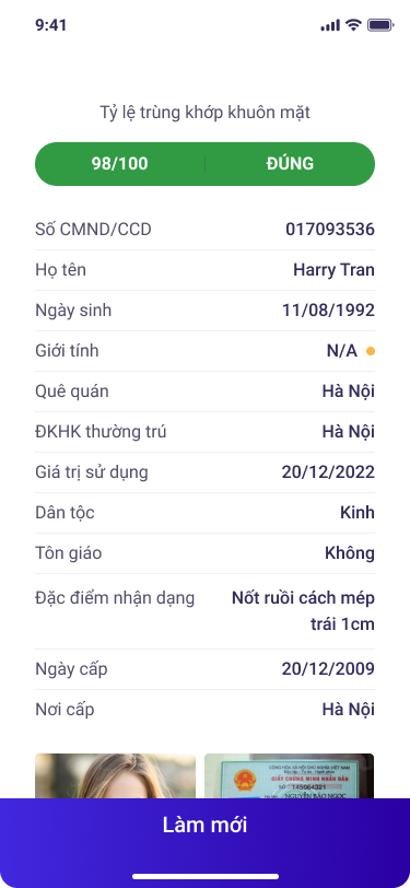 Giải pháp có các tính năng nổi bật: OCR, Face matching, Liveness Detection.