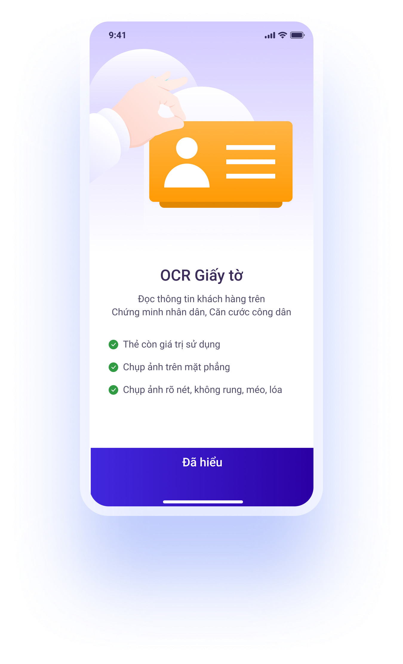 OCR tự động đọc và ghi lại những thông tin của khách hàng trên các loại giấy tờ như CMND/CCCD, bằng lái xe, hộ chiếu... một cách nhanh chóng và chính xác.